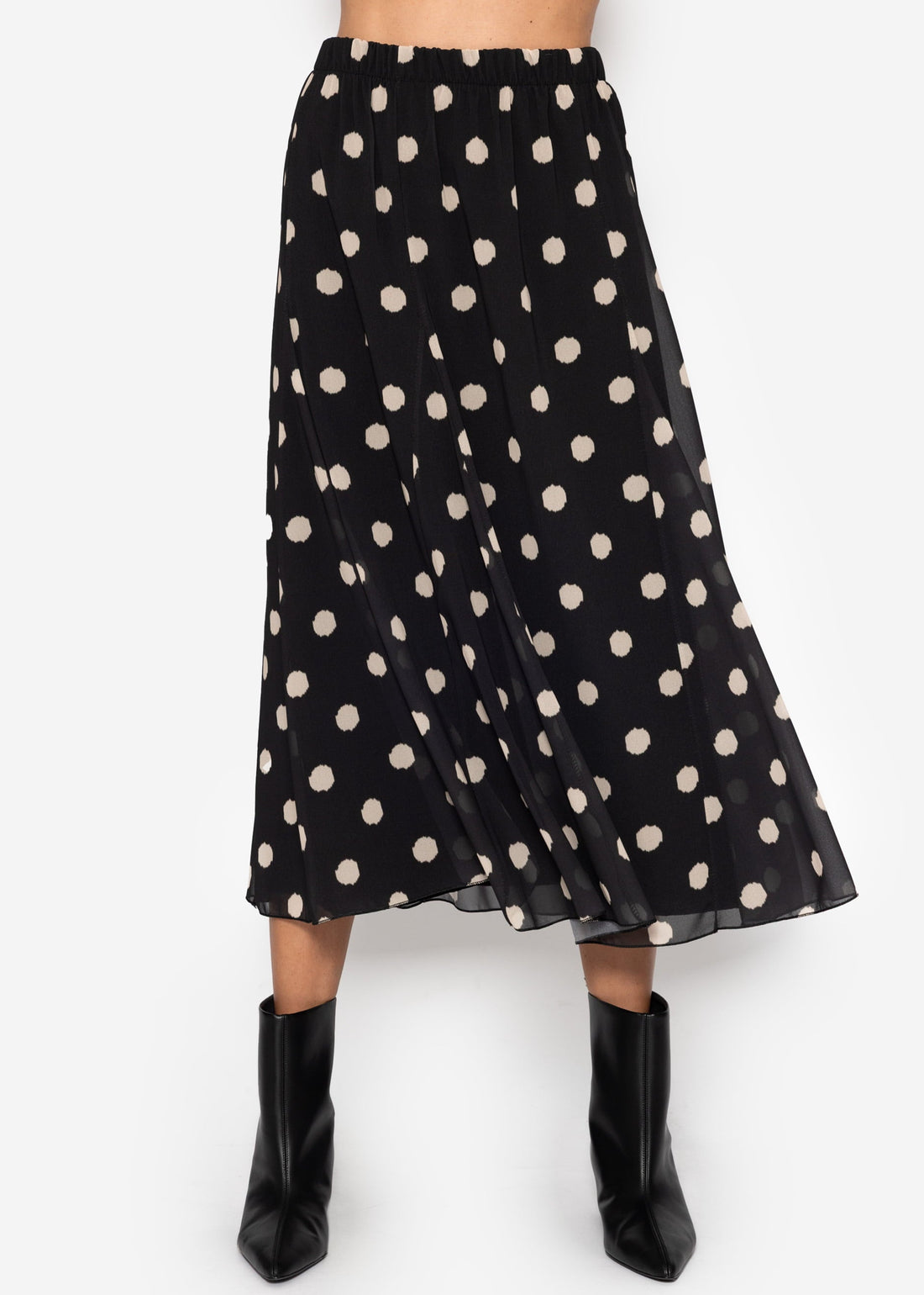 Langer Chiffon Rock mit Polka Dot-Print - schwarz