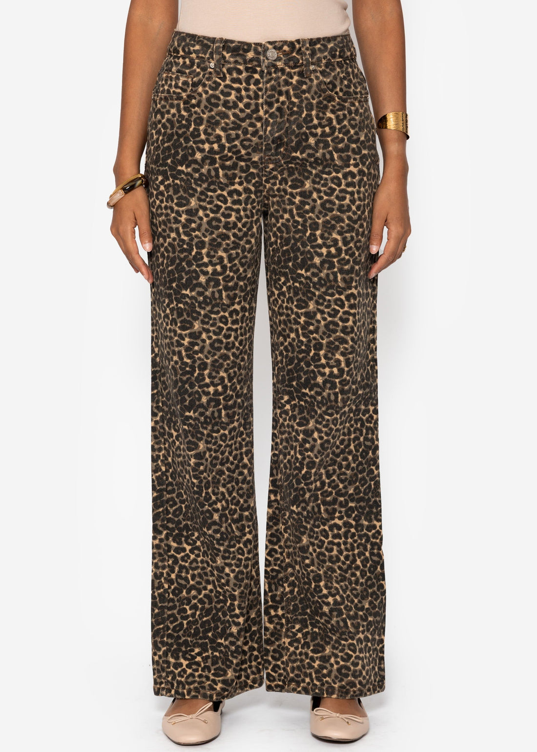Wide Leg Jeans mit hohem Bund in Leo-Print - beige