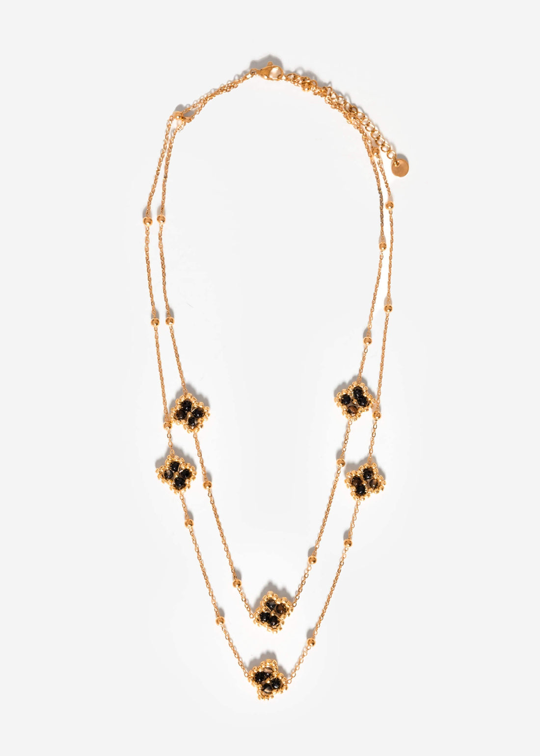 Layering Halskette mit Kleeblättern - gold