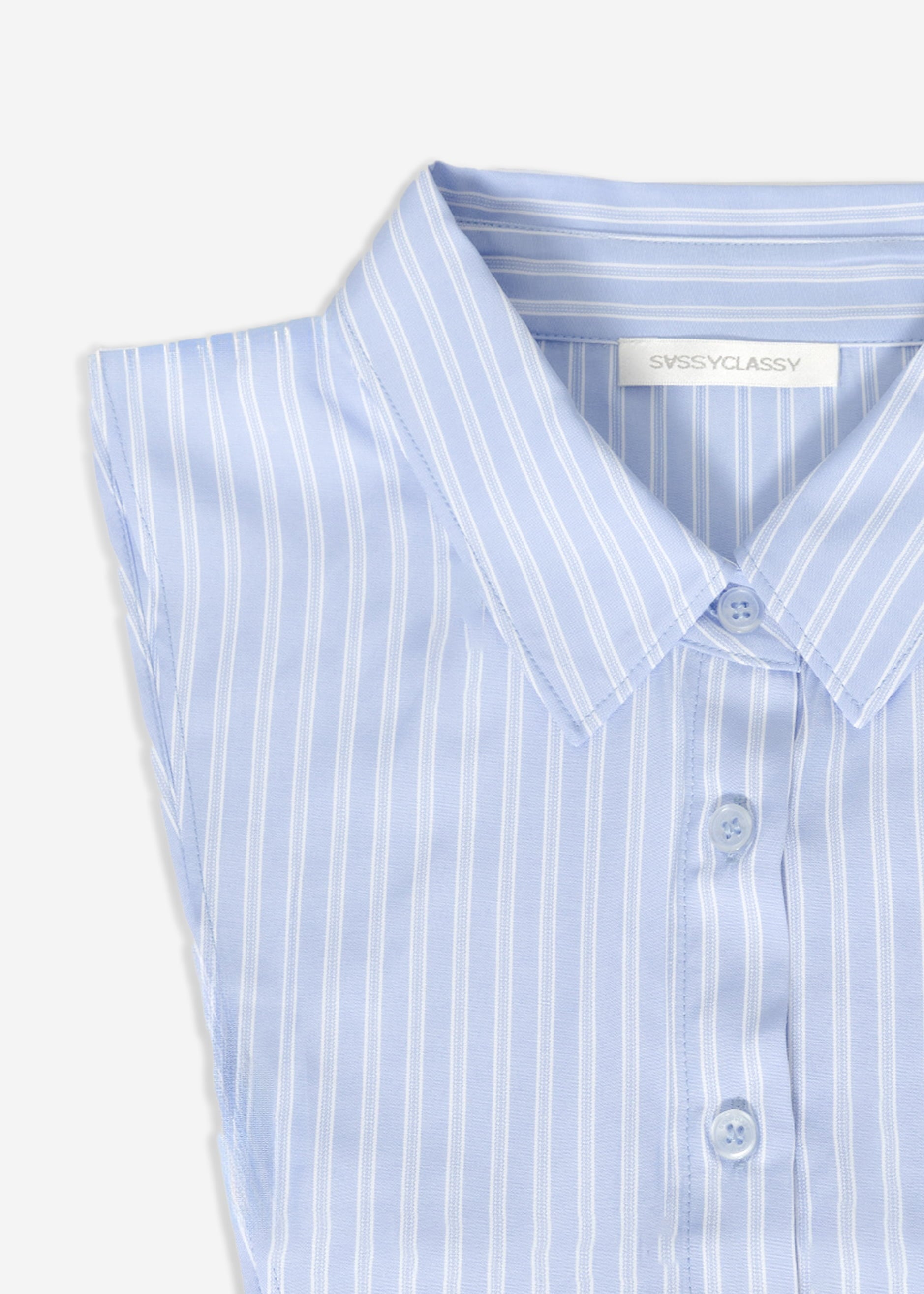 Dieser stilvolle Bluseneinsatz ist die perfekte Lösung, um im Handumdrehen einen klassischen Hemd- oder Blusenlook zu kreieren, ohne die volle Lage eines kompletten Kleidungsstücks tragen zu müssen. Das Modell ist mit einer durchgehenden Knopfleiste und einem klassischen Kragen gestaltet, wodurch er besonders elegant wirkt und sich vielseitig kombinieren lässt – ob unter Pullovern, Kleidern oder Blazern. Seitliche, elastische Bänder mit Schlaufen sorgen für einen sicheren Sitz und angenehmen Tragekomfort. So bleibt der Einsatz an Ort und Stelle, ohne zu verrutschen. Er ist ideal für Layering-Looks und als praktisches Styling-Accessoire in jeder Jahreszeit.