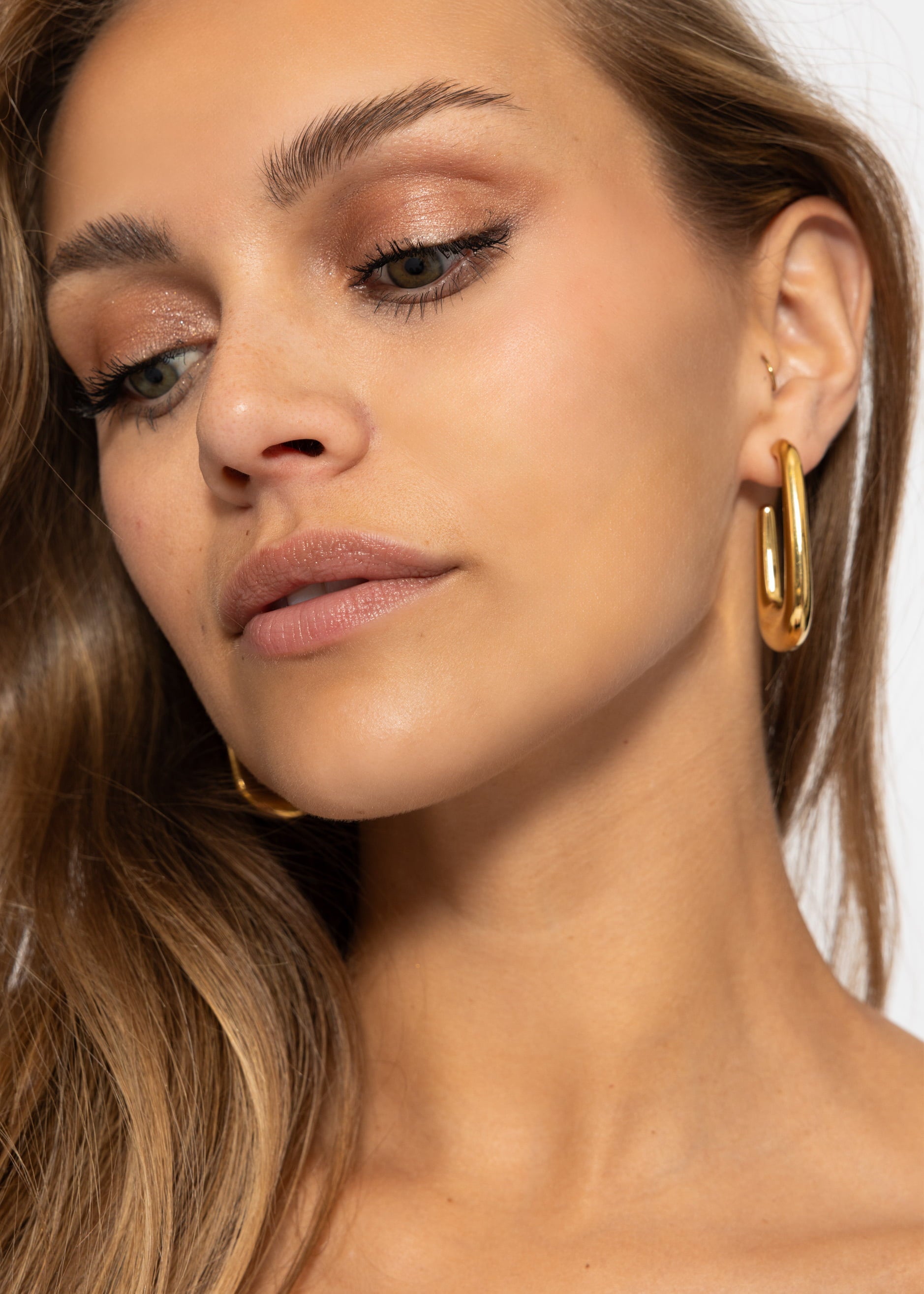 Diese markanten Squared Hoops vereinen klare, moderne Linien mit einer sanften, geschwungenen Kontur. Das Modell präsentiert sich in einer goldfarbenen Ausführung, die Stil verkörpert. Die quadratische Silhouette verleiht den Ohrringen einen trendigen Touch, der sie von gewöhnlichen Creolen abhebt. Sie besitzen einen praktischen Steckverschluss.