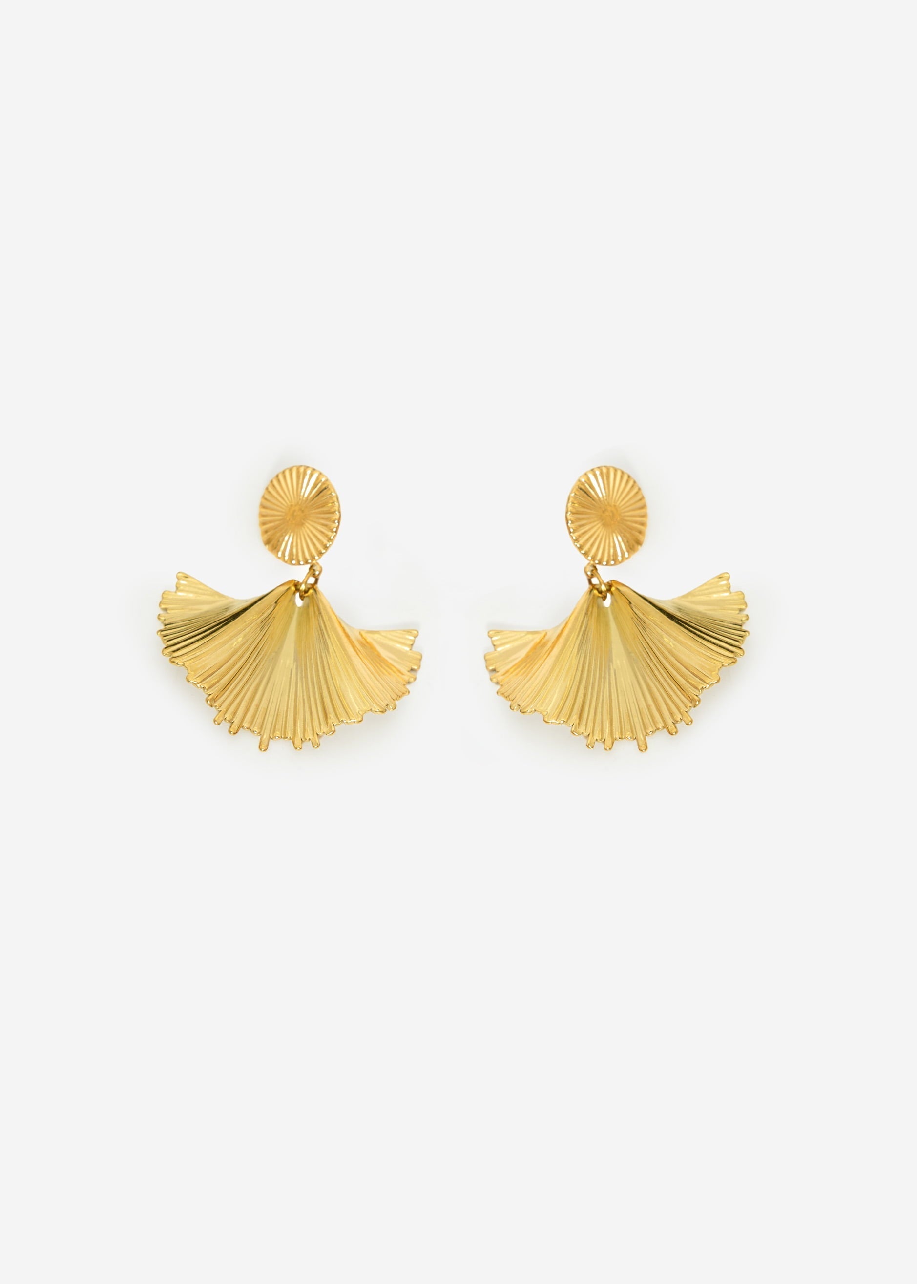 Ein echtes Statement-Piece: Diese auffälligen Ohrstecker aus glänzendem, goldfarbenem Edelstahl ziehen alle Blicke auf sich. Das Design vereint eine organische Linienführung mit modernem Glanz. Die geriffelte Struktur sorgt für spannende Lichtreflexe und verleiht dem Schmuckstück eine luxuriöse Ausstrahlung. Dieser Ohrring ist angenehm leicht und dennoch präsent – ideal für besondere Anlässe oder als Hingucker im Alltagslook.