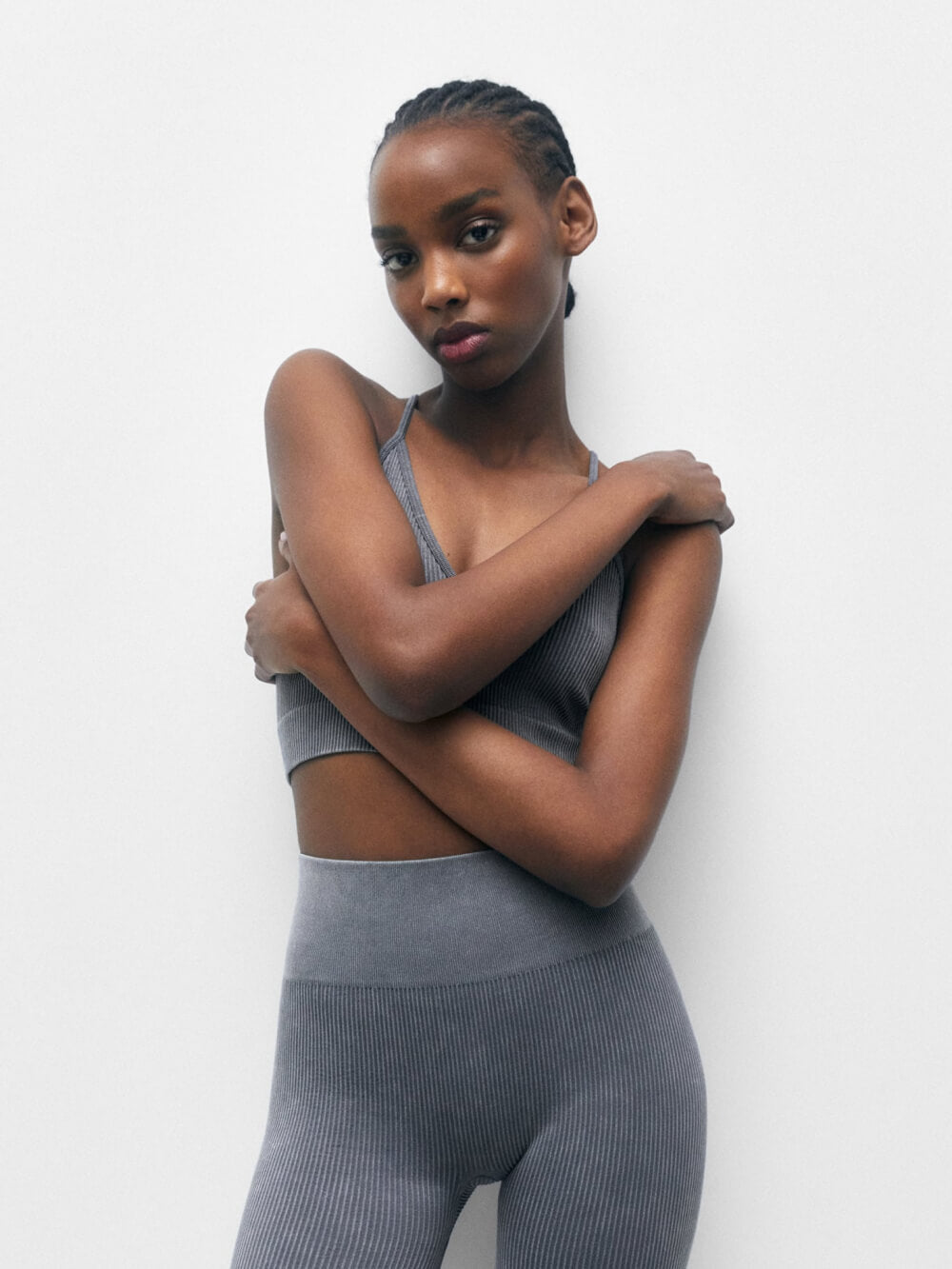 Comfy cycling leggings. Made of slightly stretchy faded and ribbed fabric.