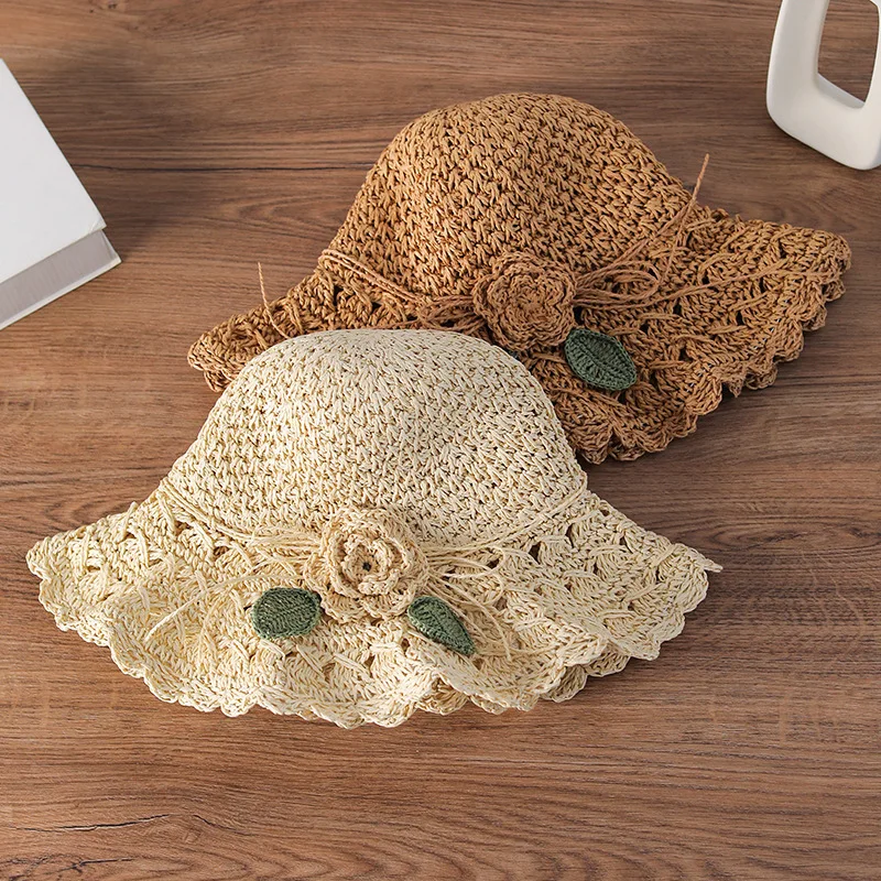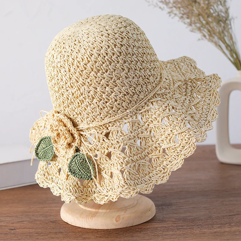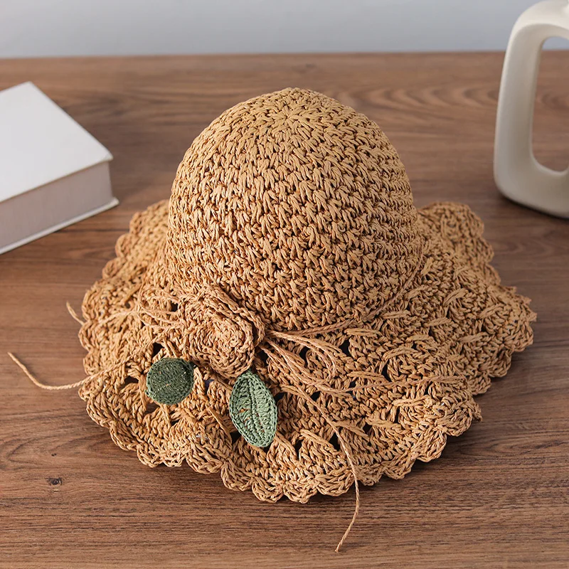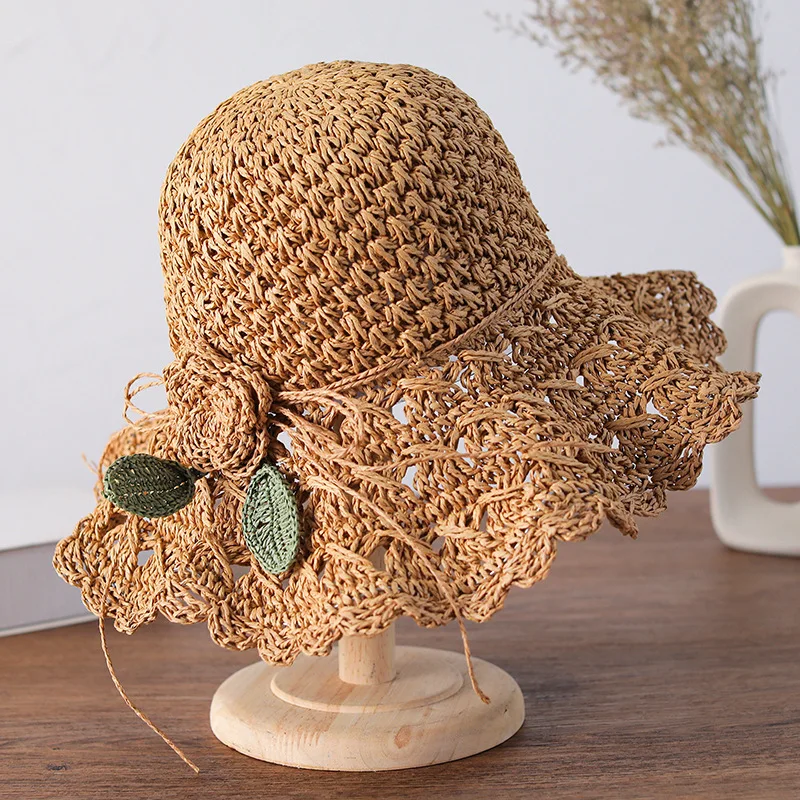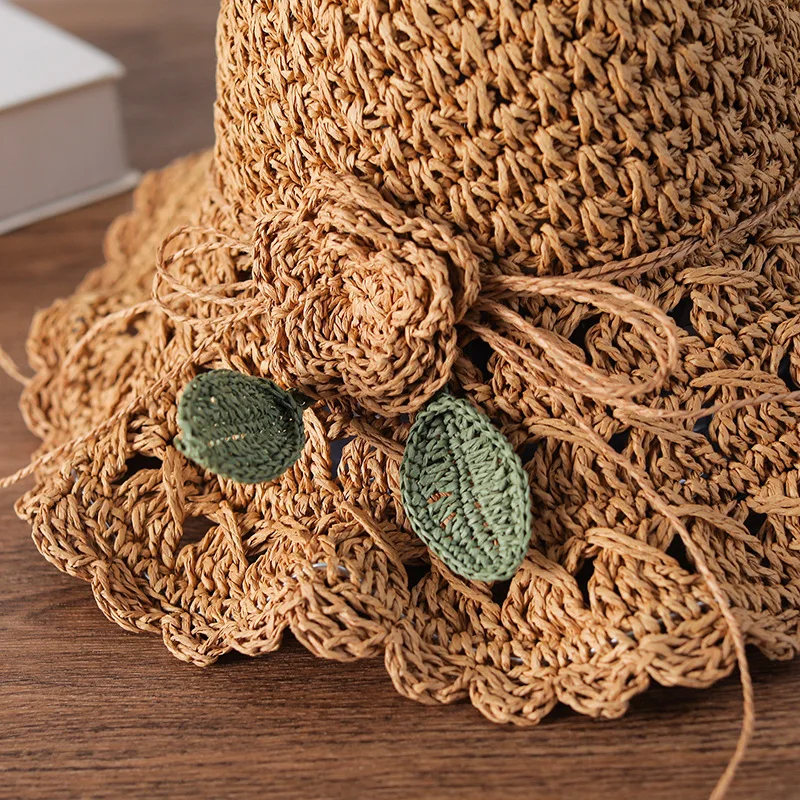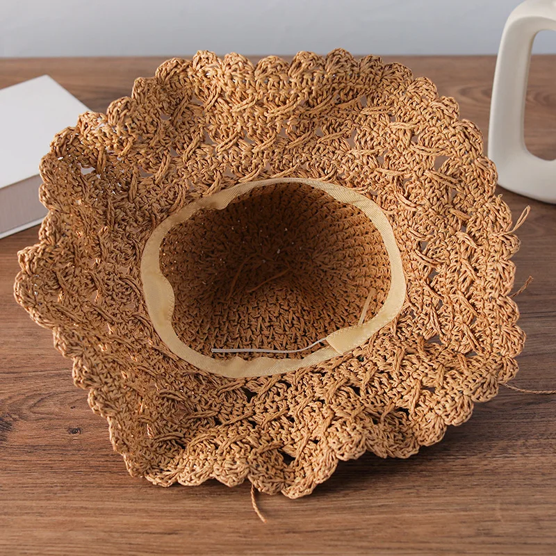Elegante chapéu de palha de crochê com detalhe de babados