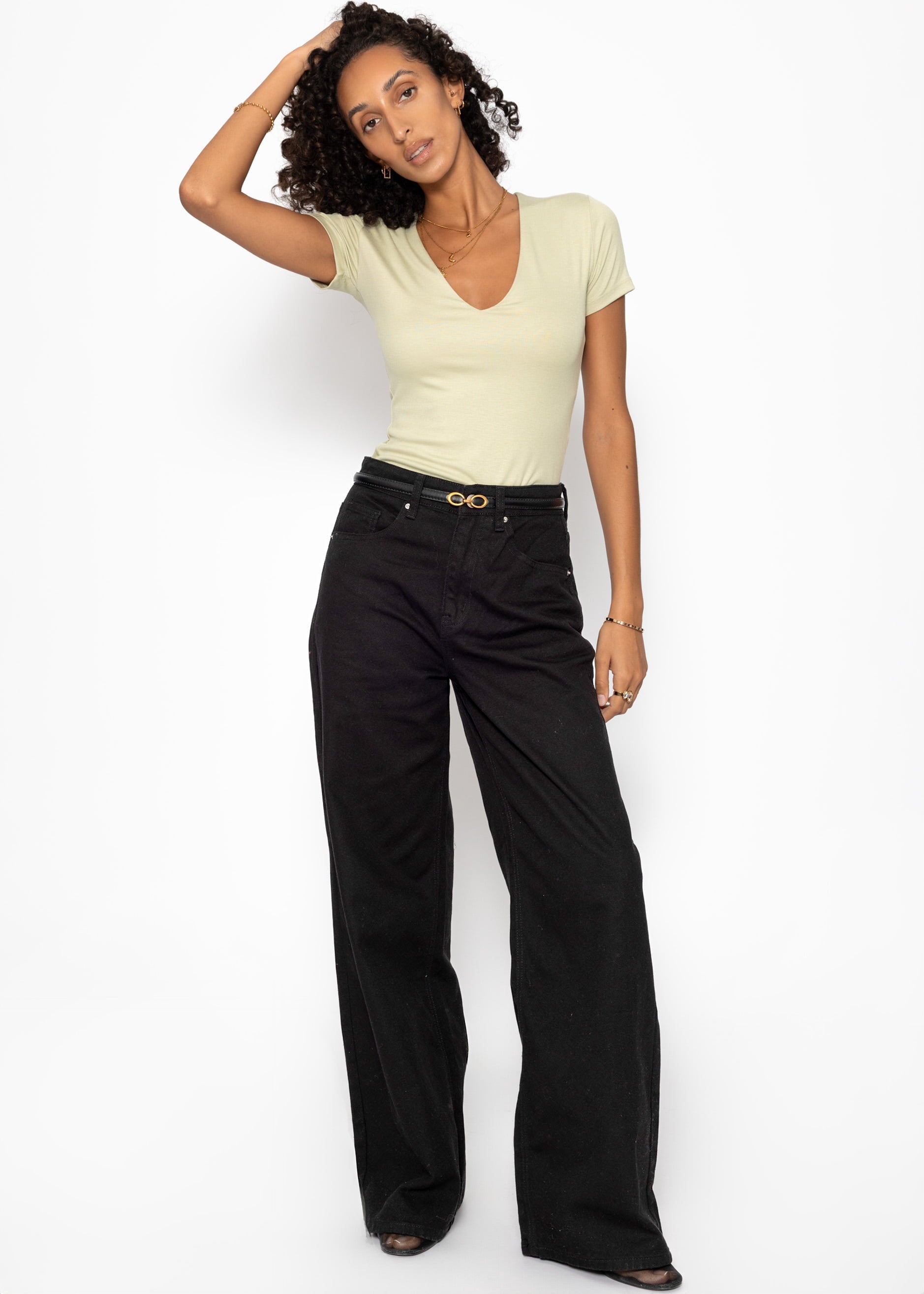 Wide Leg Jeans mit hohem Bund in Schwarz